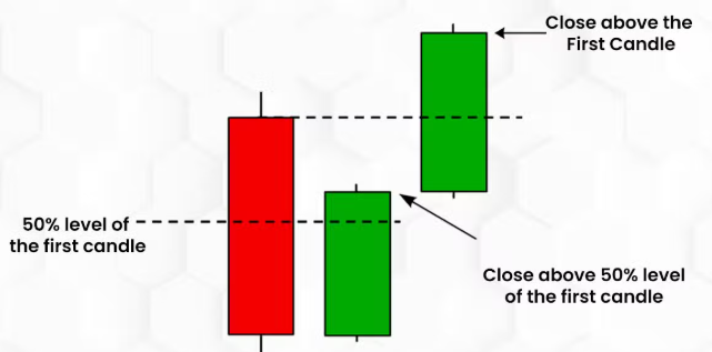 3. Candle 3: A big bullish candle that opens above the second’s open and closes above the first’s high, roaring, “Bulls, let’s roll!”