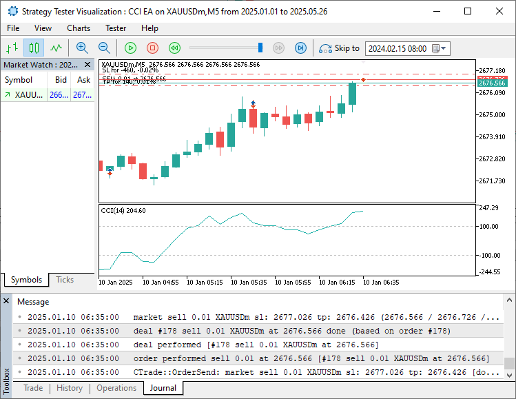 With the ship rigged, we sail into the EA’s core, where it detects CCI signals and launches trades.
