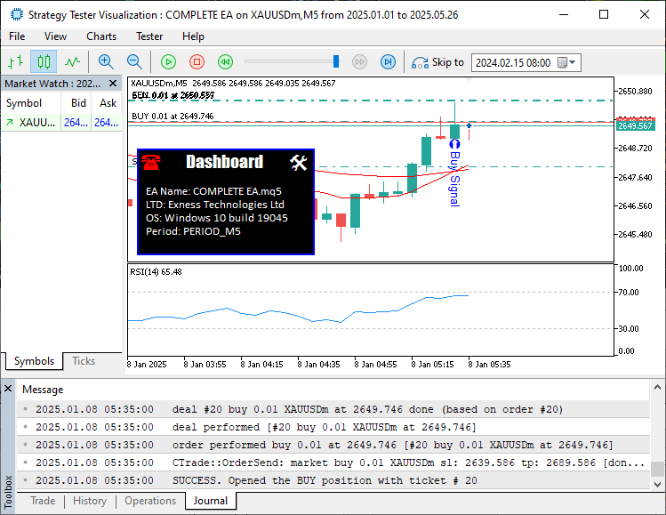 We tag our trades with the magic number, ensuring our loot doesn’t mix with other pirates’. For swagger, we hoist a dashboard on the chart—a black panel with blue borders flashing the EA’s name, account type (demo or real, like a pirate’s rank), and timeframe, like a ship’s flag waving proud. It’s our command center, keeping us sharp as we sail. With the ship rigged and crew ready, we’re set to hunt treasure!