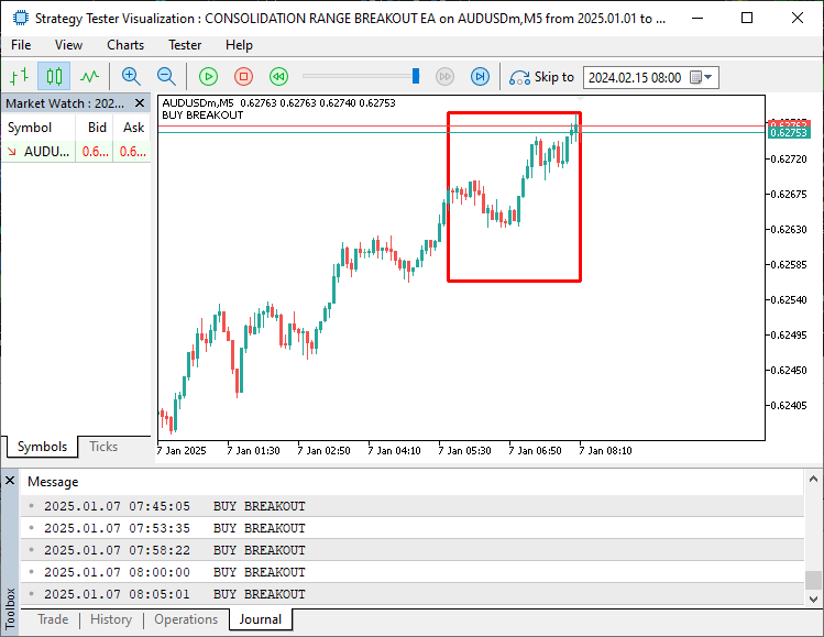 3. Drop the EA on your chart, enable AutoTrading, and watch for red rectangles and breakout signals.
